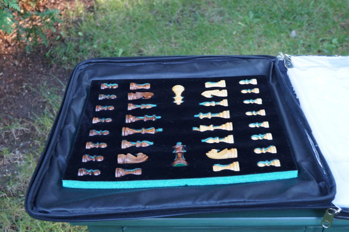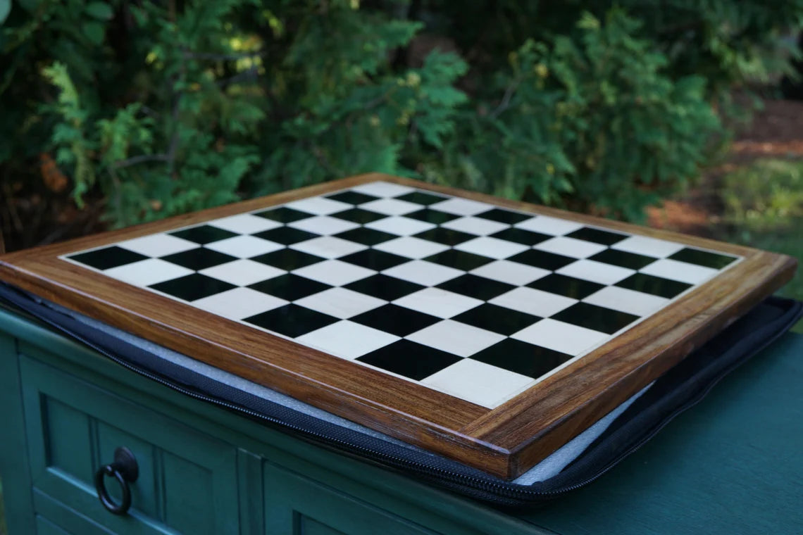 - Portability: Tournament Size Flat Chessboard with Ebony and Box wood Chess pieces