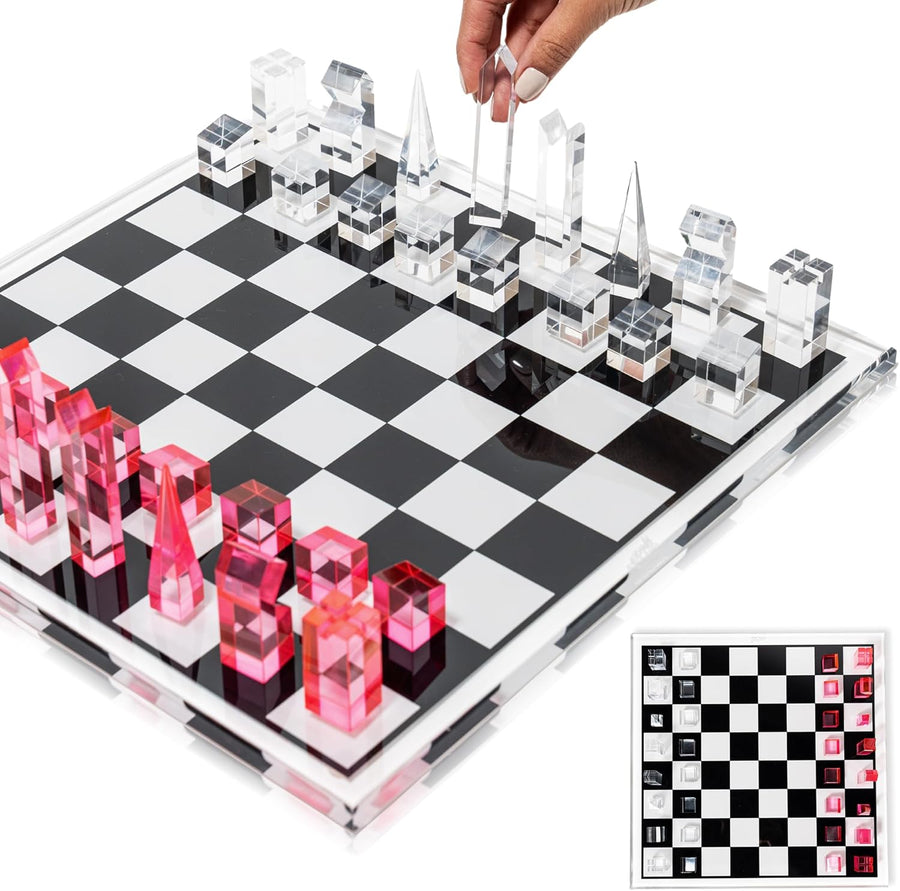 Acrylic Chess Set for Decor and Playing - Modern Pink Chess