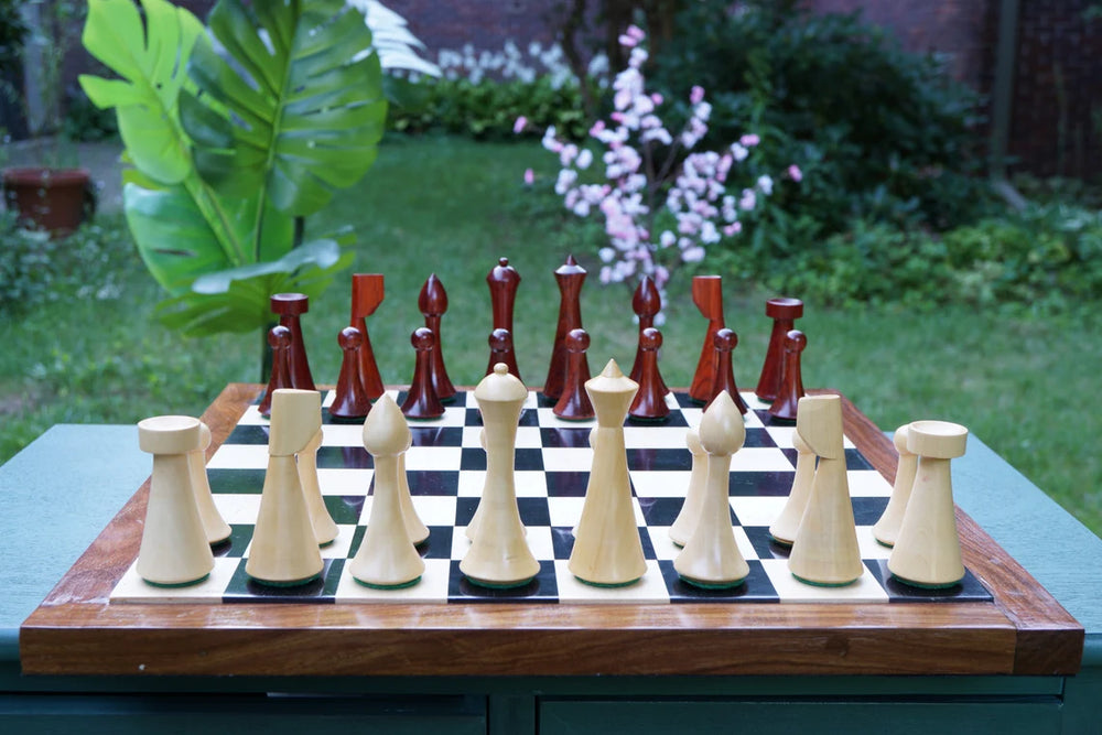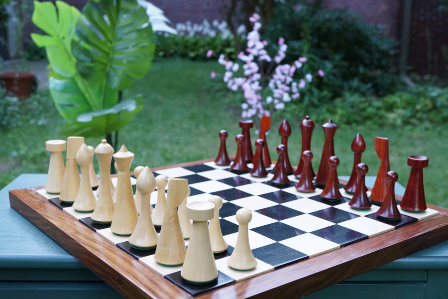Combo Chess Set | Minimalist Style Modern Design Hermann Ohme Padauk Wood Chess Set with Endgrain Ebony Board - Chess'n'Boards