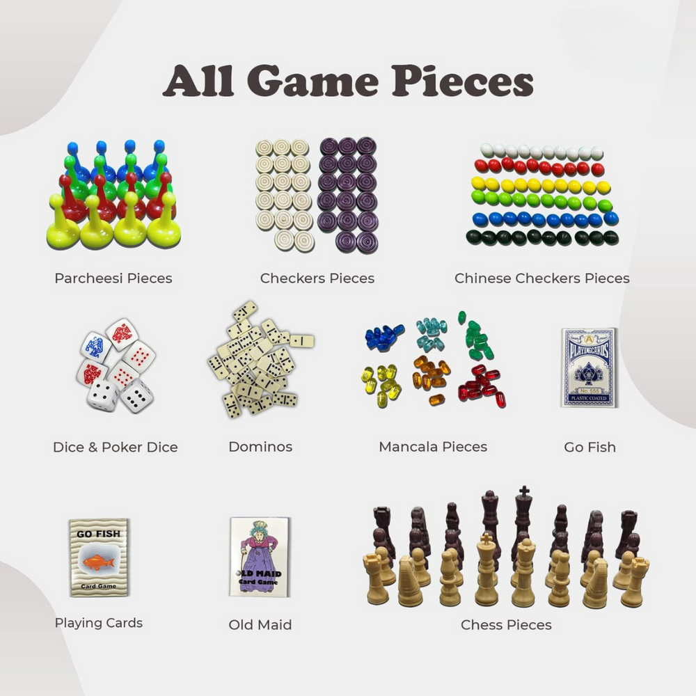 - 15 Classic Games: Snakes & Ladders, Checkers, Chess, Tic Tac Toe, Solitaire, Backgammon, Mancala, Pass-Out, Parcheesi, Chinese Checkers, and more!