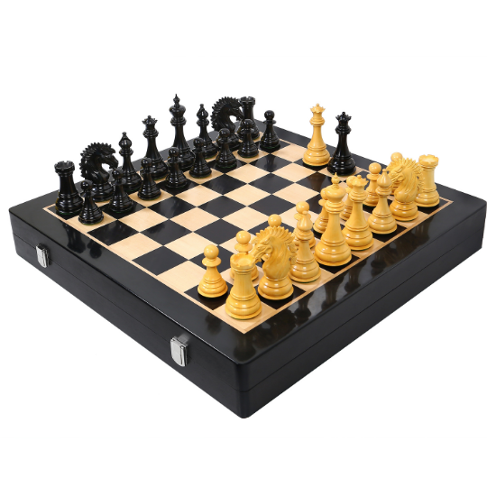 This 16" Ebony and Maple Wood chess board provides a professional game experience with its hardwood end grain finish and felted flat bottom. The hardwood board ensures a secure and smooth gaming experience. Enjoy long-lasting game sessions with this highly portable and durable board. đ€ đ§©Â