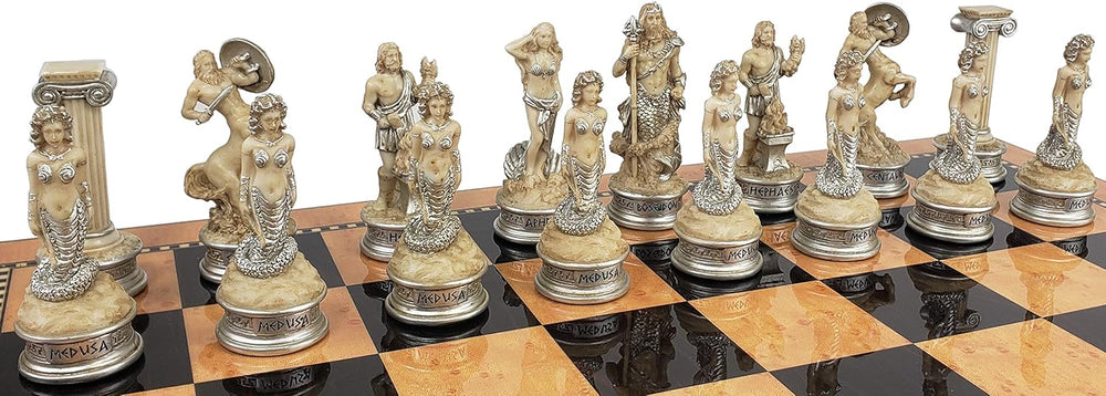 Elevate your chess collection with this exquisitely crafted set of hand-painted resin chess pieces. Designed with precision and attention to detail, each piece is solidly constructed for durability and features a felt bottom to protect your chess board while ensuring smooth gameplay.