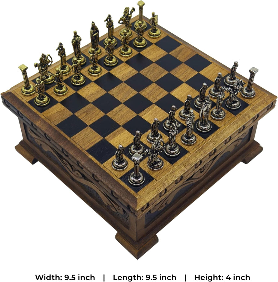 • Hidden Key Storage Box – Comes with a uniquely designed wooden box featuring a concealed lock to safely store every chess piece.