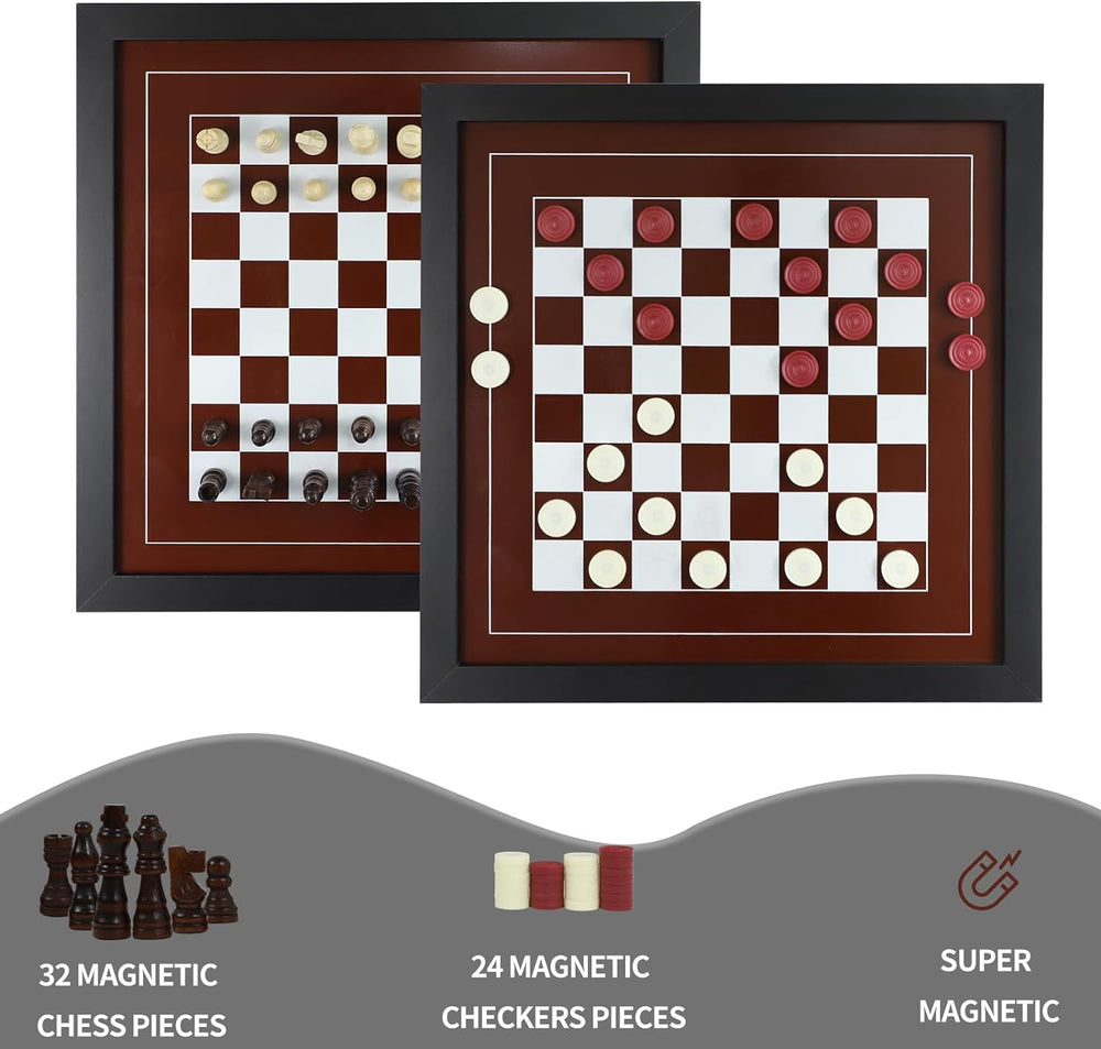 2-in-1 Game: Chess & Checkers on the Wall or Tabletop (16.5" x 16.5")