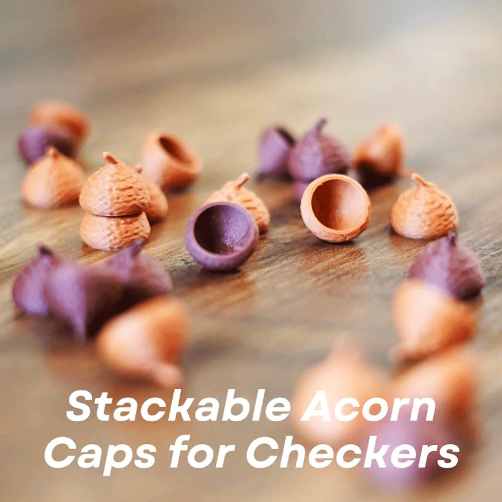 Inside this clever log, measuring 10x10 inches, you'll discover a complete set of magnetic, mushroom-themed chess pieces and acorn checkers. Each piece is thoughtfully designed, with Penny Bun pawns, Shiitake rooks, King Trumpet bishops, Yellow Morel knights, Fly Agaric queens, and Chanterelle kings, adding a whimsical touch to every match. The magnetic stability ensures pieces stay securely in place, making it ideal for travel or outdoor adventures.