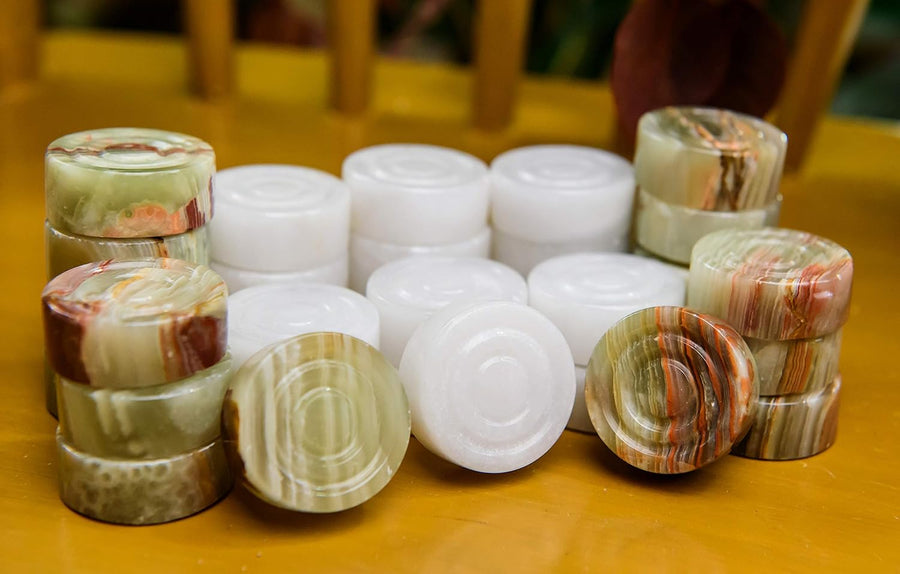 Elevate Your Checkers Game with Handcrafted Marble Pieces