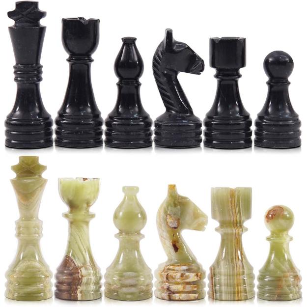 Marble Chess Pieces Black & Multi Green 3.5 Inch