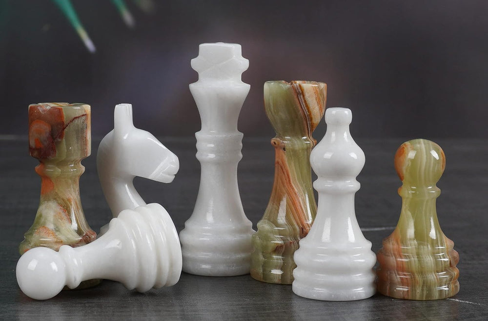Indulge in the timeless game of chess with these luxurious, hand-crafted marble chess figures!