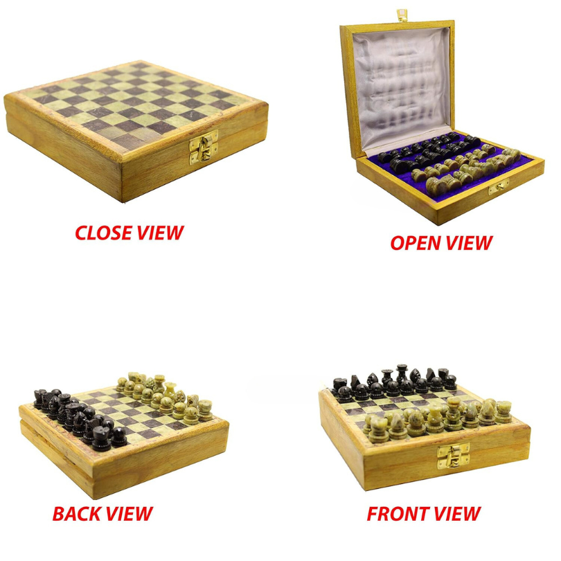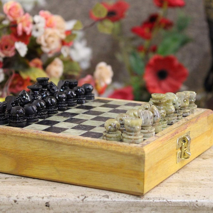 • Hand-carved Stone Pieces: Each piece, including the pawns (made from black and brown natural stone), is meticulously hand-carved for a unique and luxurious feel.