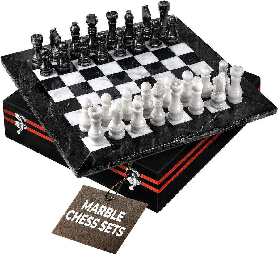 - Unearth natural beauty: Each piece is meticulously carved from genuine white and black onyx marble, showcasing unique patterns for a touch of elegance on your game board.