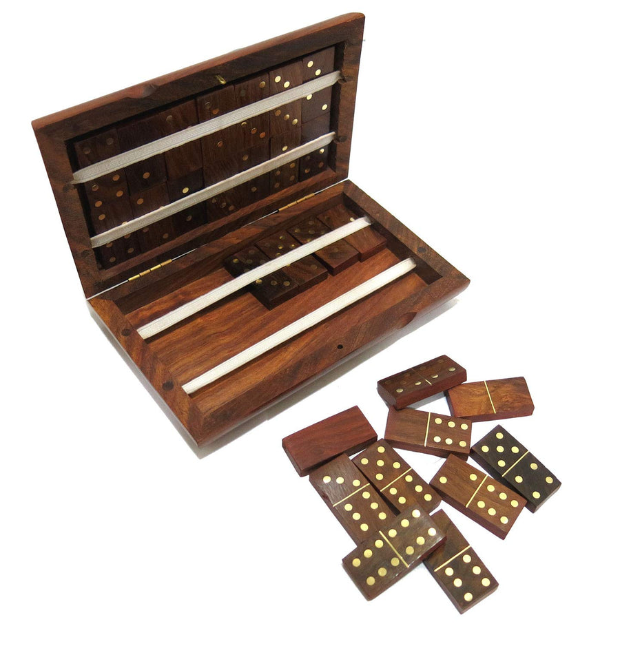 Unveiling a unique blend of game and décor: This book-shaped domino set is crafted from luxurious Sheesham hardwood and adorned with eye-catching brass inlays, making it a sophisticated addition to any room.