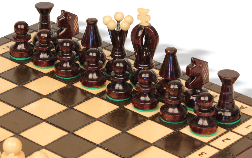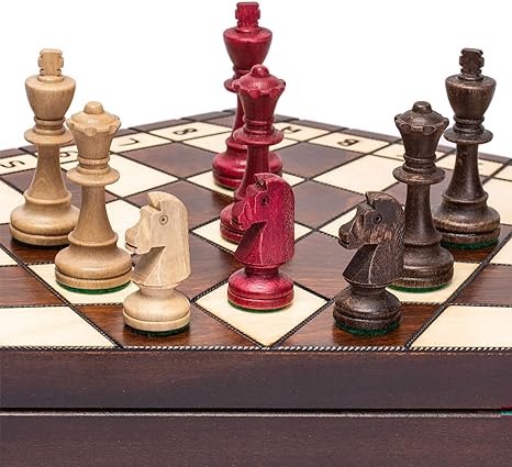 The feel and weight of the chess pieces is exactly what my husband was looking for. The minimalist pieces are beautiful. Great find that compliments the homemade chess board my husband and my 85 year old uncle made together. Both are of high quality!