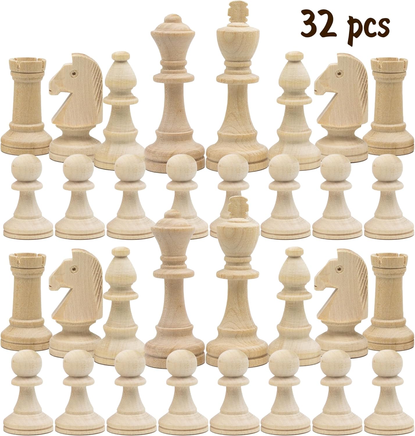 • Customizable DIY design: This 32 unpainted wooden chess pieces offer an opportunity to create a personalized and unique board game, perfect for DIY crafts, and creative home decor accents