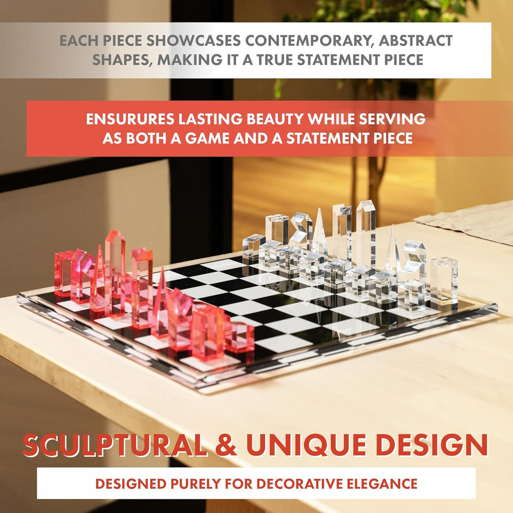 Artistic Mastery: Each chess piece is meticulously carved from high-quality crystal, showcasing intricate details that reflect the craftsmanship of skilled artisans.