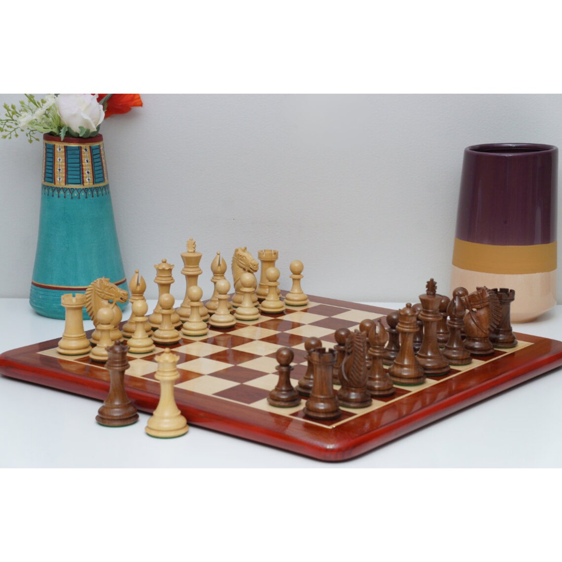 Embrace grandeur with the Rio Staunton Series Chess Set, featuring the iconic Big Knight. Crafted from your choice of luxurious Indian Rosewood, Bud Rosewood, Ebony Wood, or striking Burnt Boxwood, each set offers exceptional beauty and tournament-grade quality. The characteristic Big Knight adds a touch of majesty, while the weighted pieces ensure stability and a satisfying playing experience. Elevate your chess game and immerse yourself in the timeless elegance of the Rio Staunton Series.