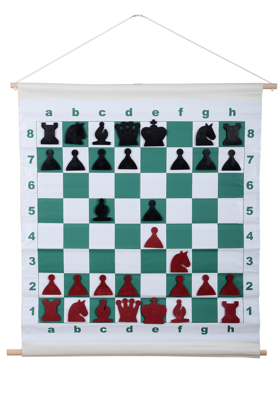 This demonstration chess board finds widespread use in classrooms across North America. It's the standard demo board distributed by the US Chess Federation. It's recognized by all chess teachers. The wall hanging chess board enables you to easily display a chess set position to a class of students. It's great either for teaching or for allowing spectators to view a game in progress.