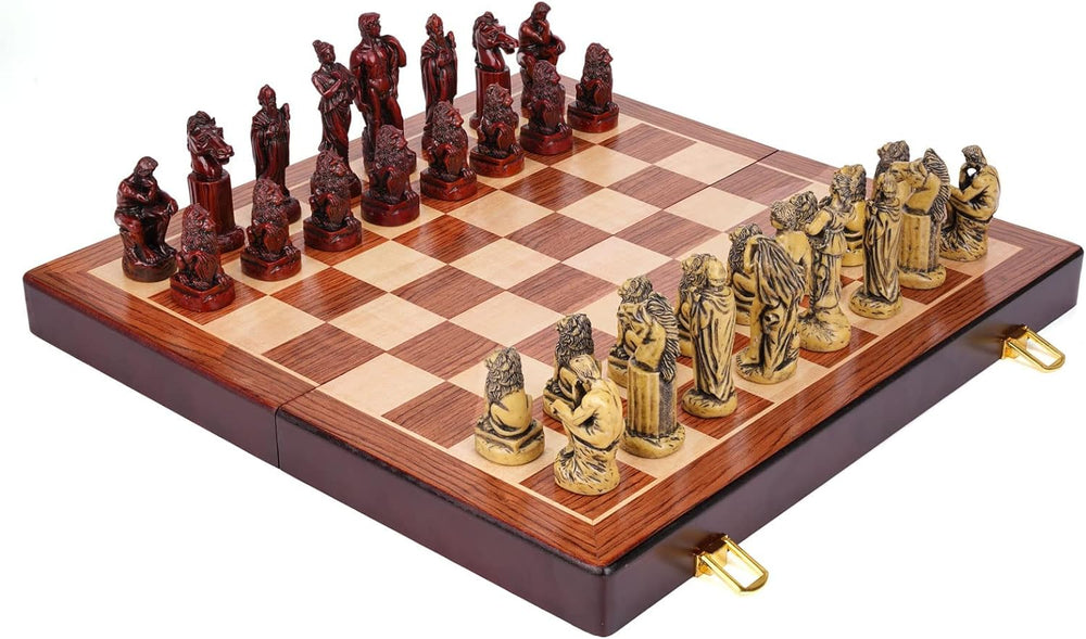 Retro Roman Chess Set with Resin Chess Pieces and Wooden Chessboard