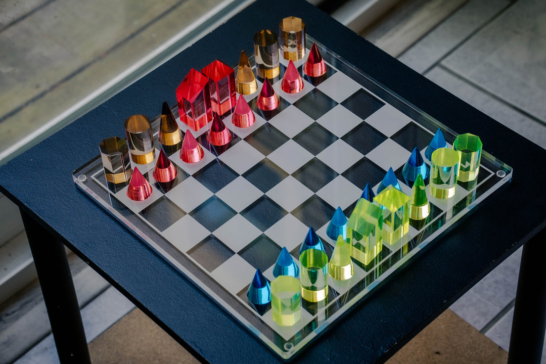 Featuring a sleek acrylic board and 32 vibrantly colored laser-cut pieces in green, light blue, pink, and orange, this set is sure to turn heads. Whether you're a seasoned chess player or a casual enthusiast, this eye-catching design is a fun and functional way to challenge your mind and add a pop of personality to any room.