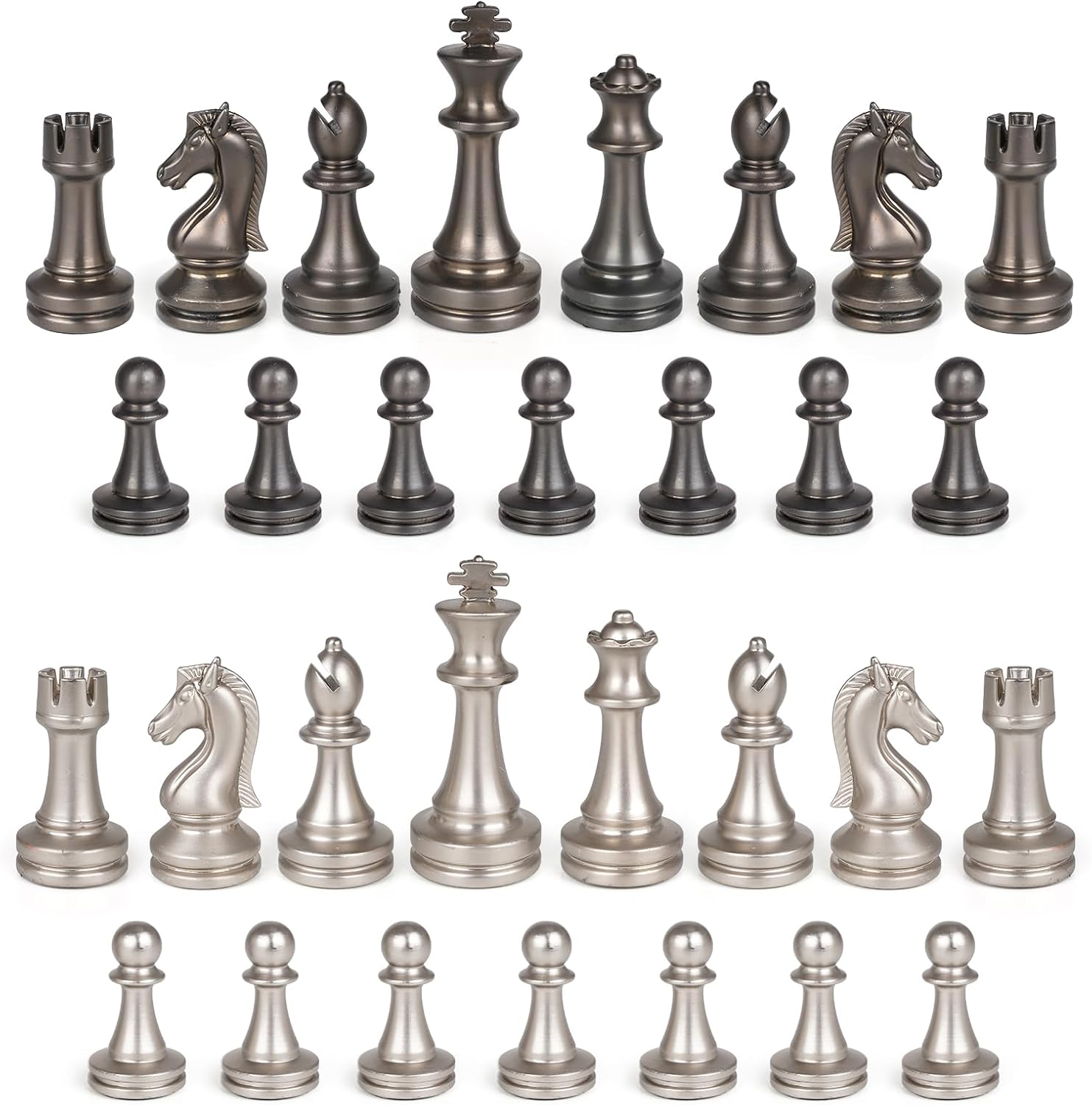 • ♟️ Premium Metal Chess Pieces – Weighted & Durable Crafted with luxury in mind, our metal chess pieces are solid, weighted, and designed for stability. Each piece features a classic finish that brings elegance and durability to every match. Perfect for collectors, adults, and chess enthusiasts.