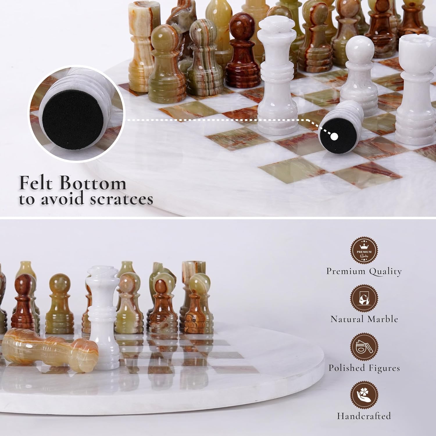 Premium Material: The entire set, including the board and pieces, is crafted from high-quality natural marble, giving it substantial weight and an elegant, cool-to-the-touch feel.