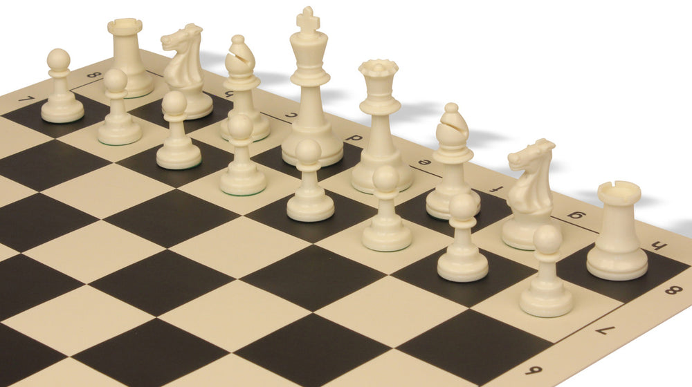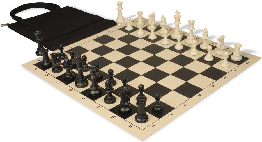 Standard Club Easy-Carry Plastic Chess Set Black & Ivory Pieces with Vinyl Rollup Board - Black