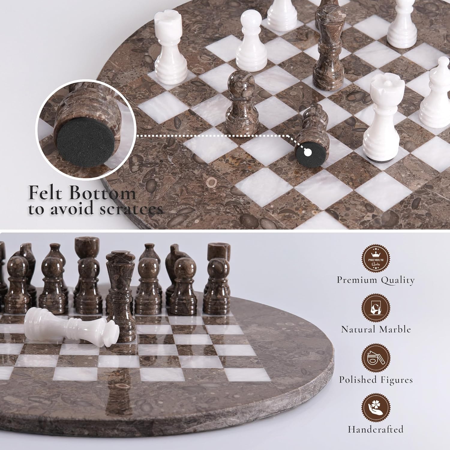 Handmade Marble Chess Set - 15" Circular Board, 34 Hand-Polished Pieces, Storage Box